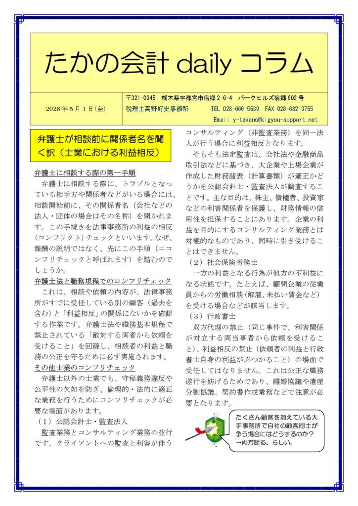 | たくさん顧客を抱えている大手事務所で自社の顧客同士が争う場合にはどうするのか?→両方断る、らしい。 |