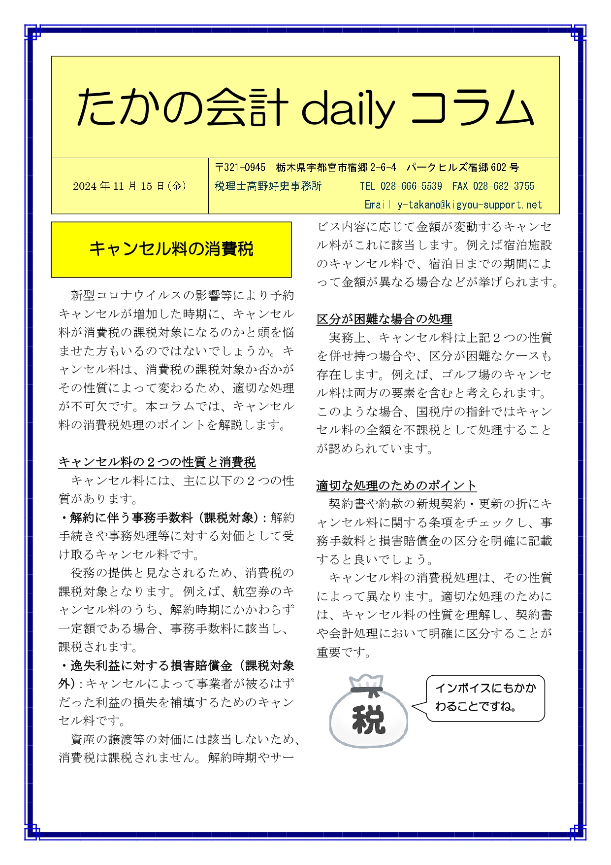 Previous Post: キャンセル料の消費税