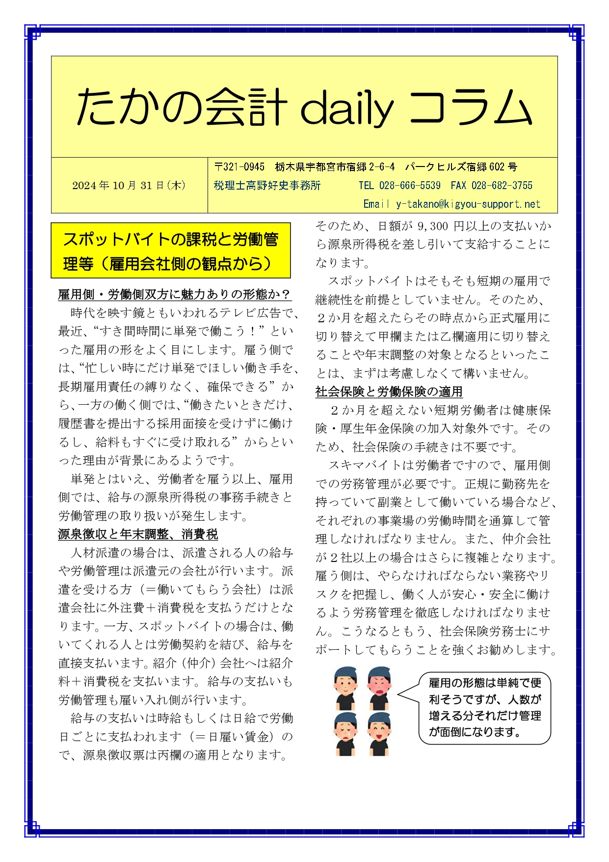 Previous Post: スポットバイトの課税と労働管理等(雇用会社側の観点から)
