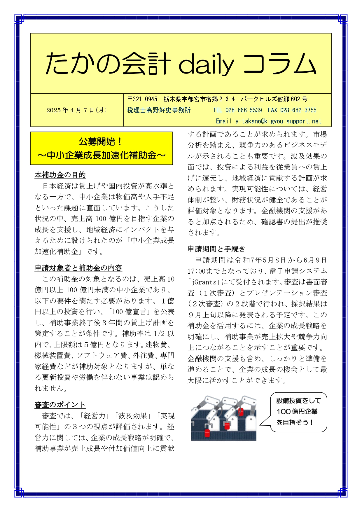 Previous Post: 公募開始!〜中小企業成長加速化補助金〜