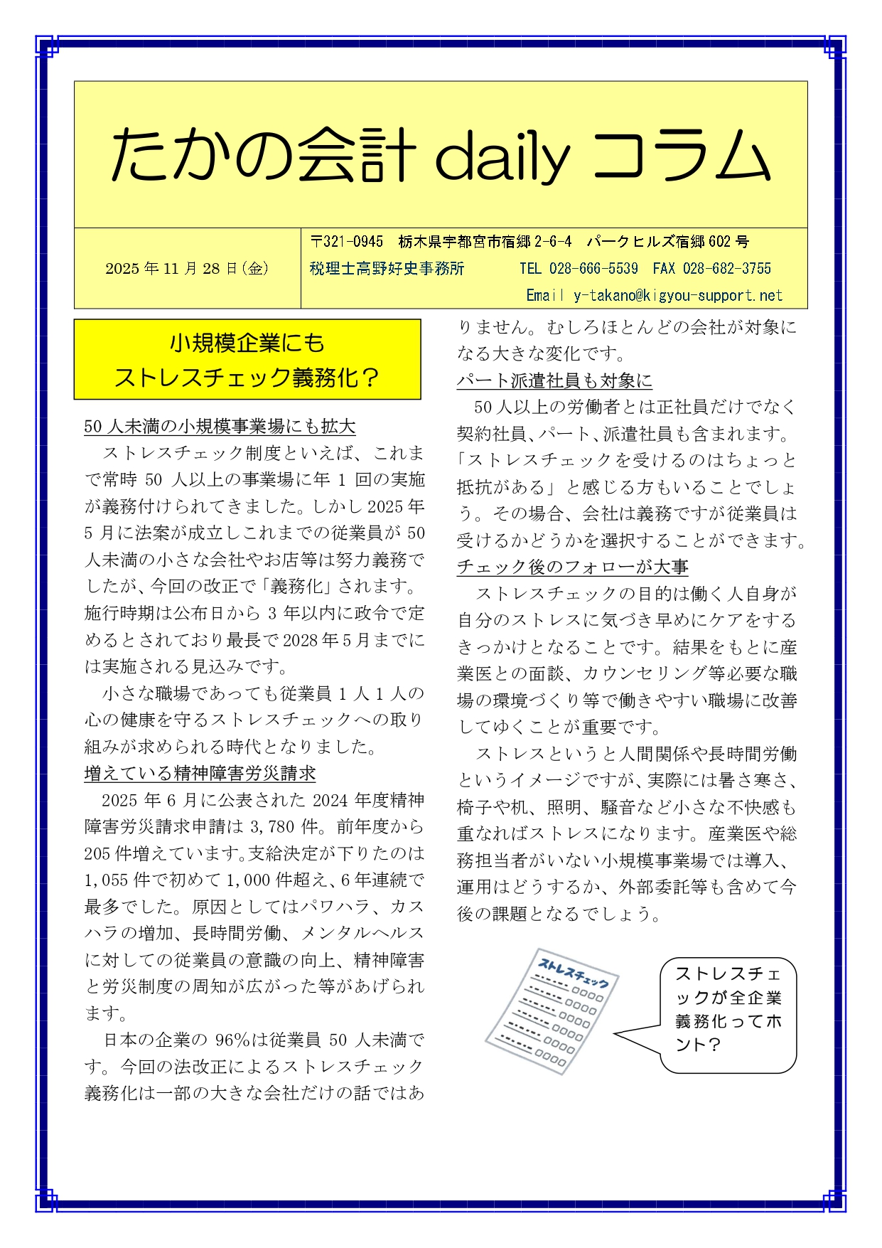 Previous Post: 小規模企業にもストレスチェック義務化?