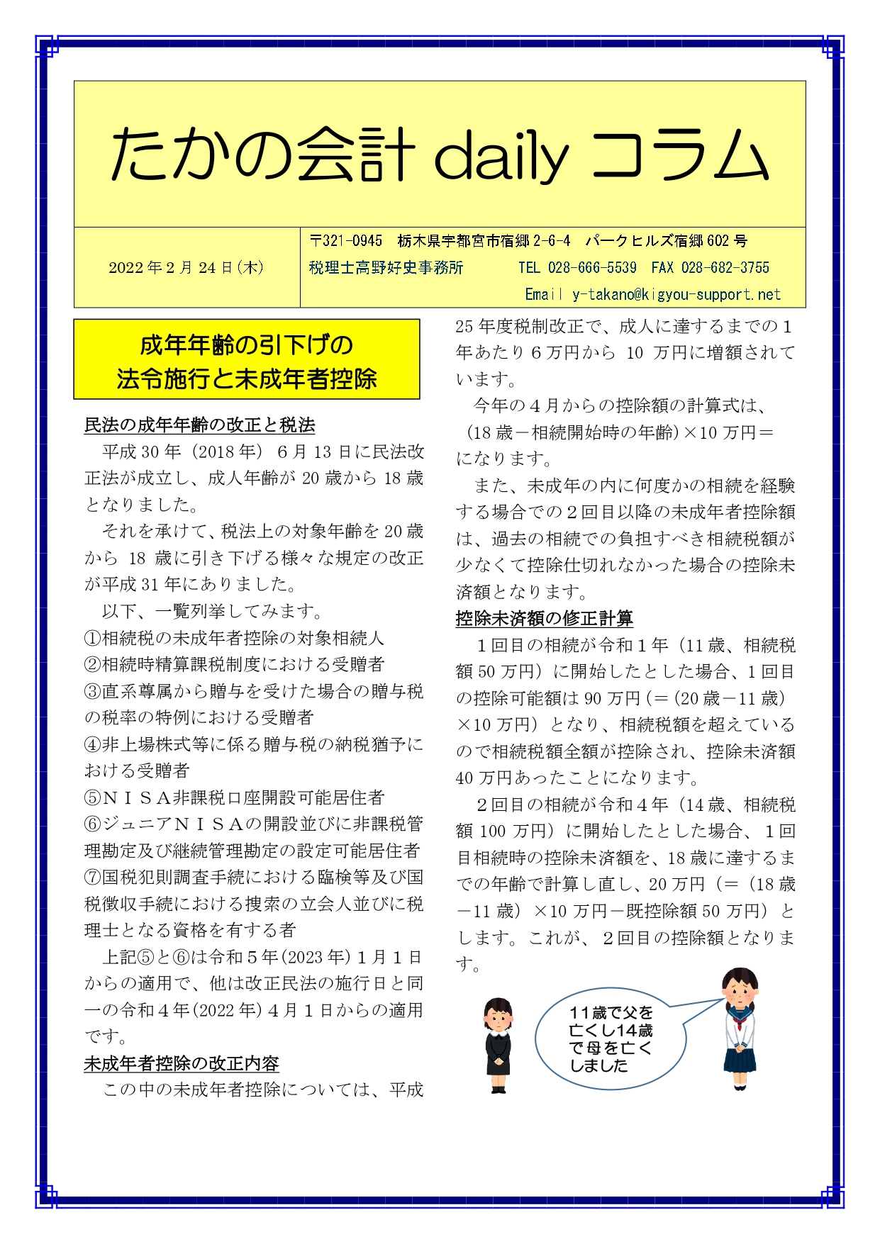 Previous Post: 成年年齢の引下げの法令施行と未成年者控除