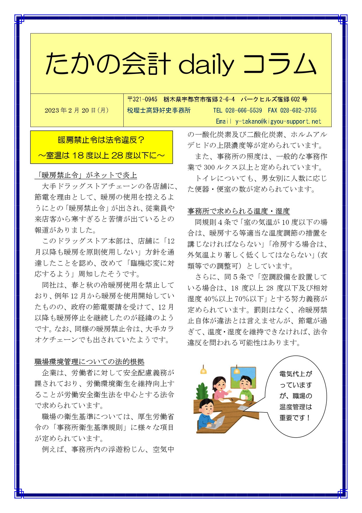 Previous Post: 暖房禁止令は法令違反?~室温は18度以上28度以下に~