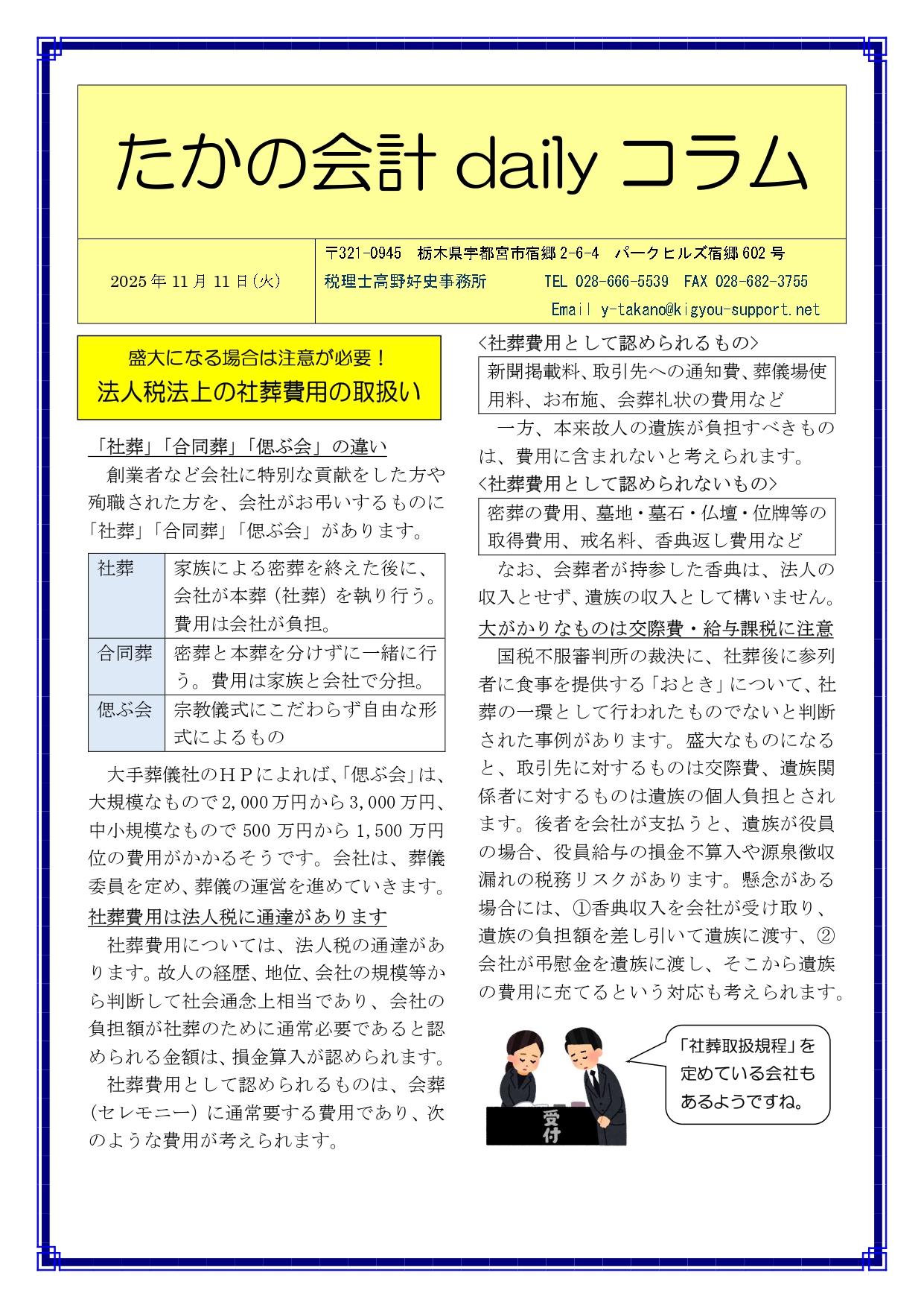 Previous Post: 盛大になる場合は注意が必要! 法人税法上の社葬費用の取扱い