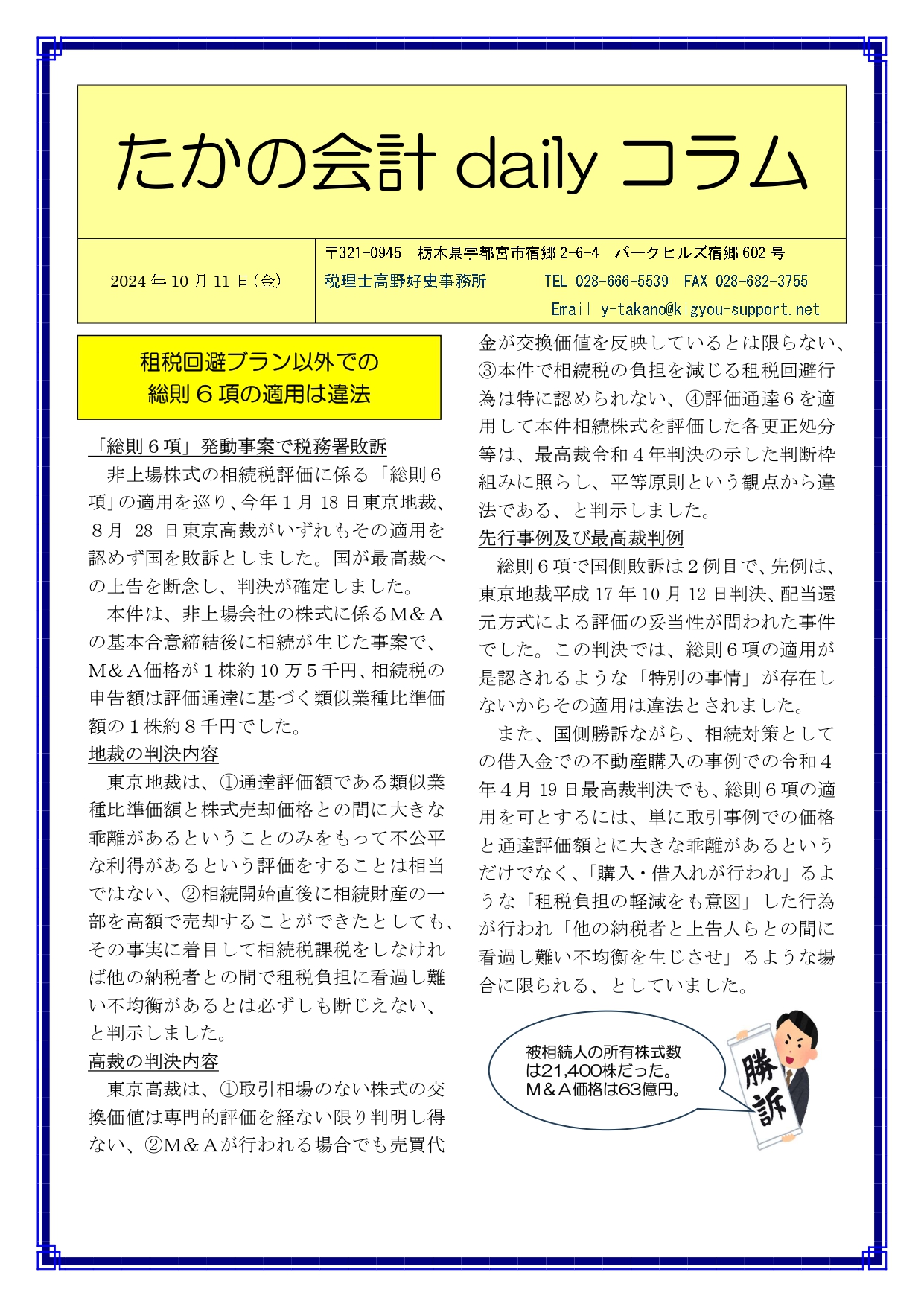 Previous Post: 租税回避ブラン以外での総則6項の適用は違法