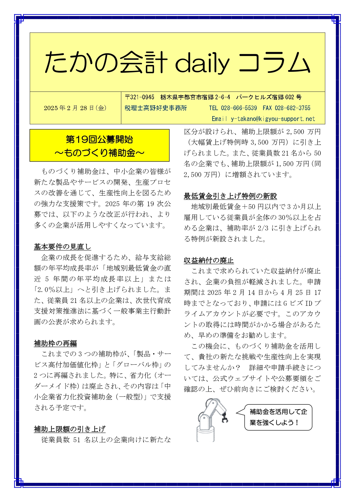 Previous Post: 第19回公募開始〜ものづくり補助金〜