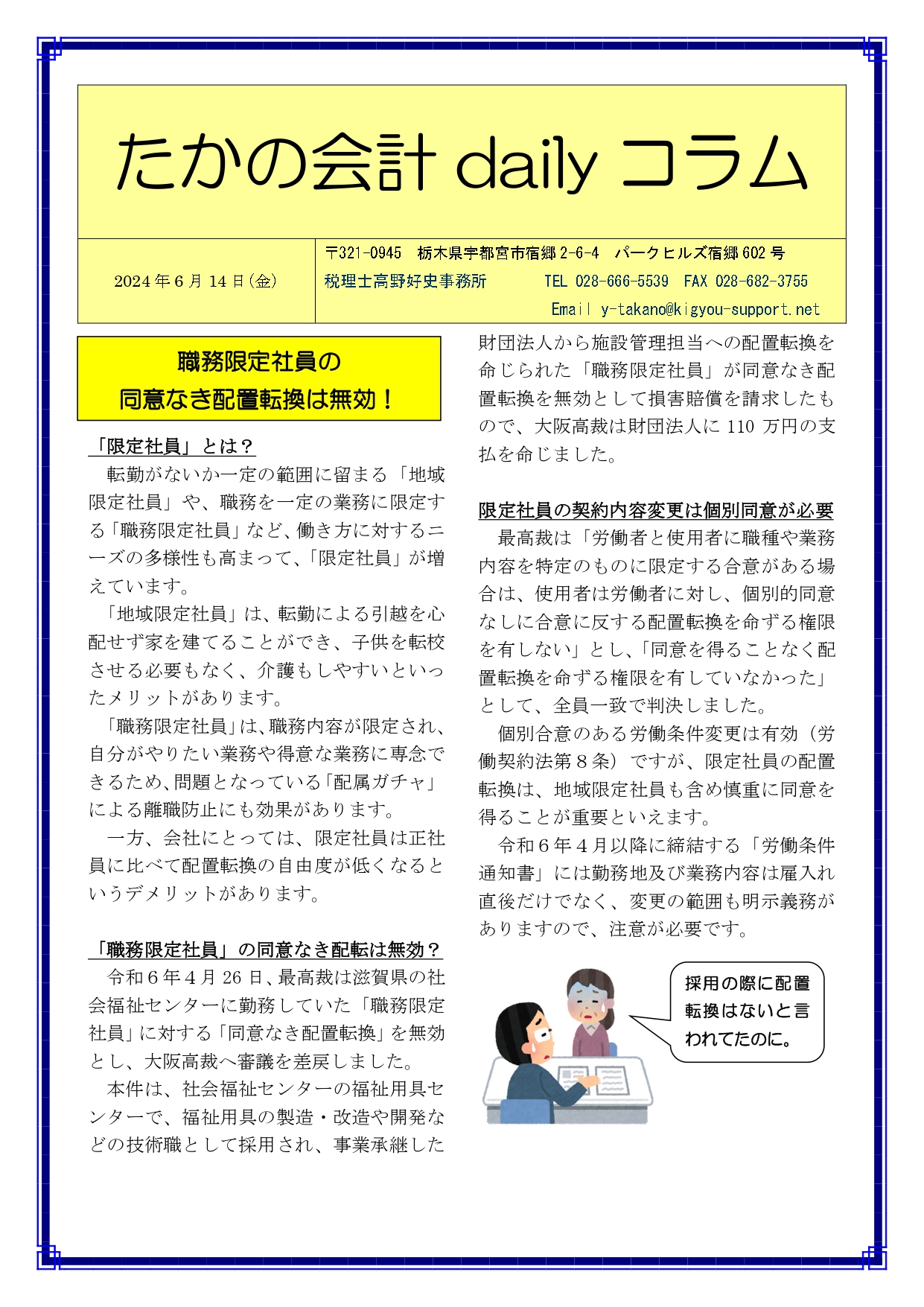 Previous Post: 職務限定社員の同意なき配置転換は無効!