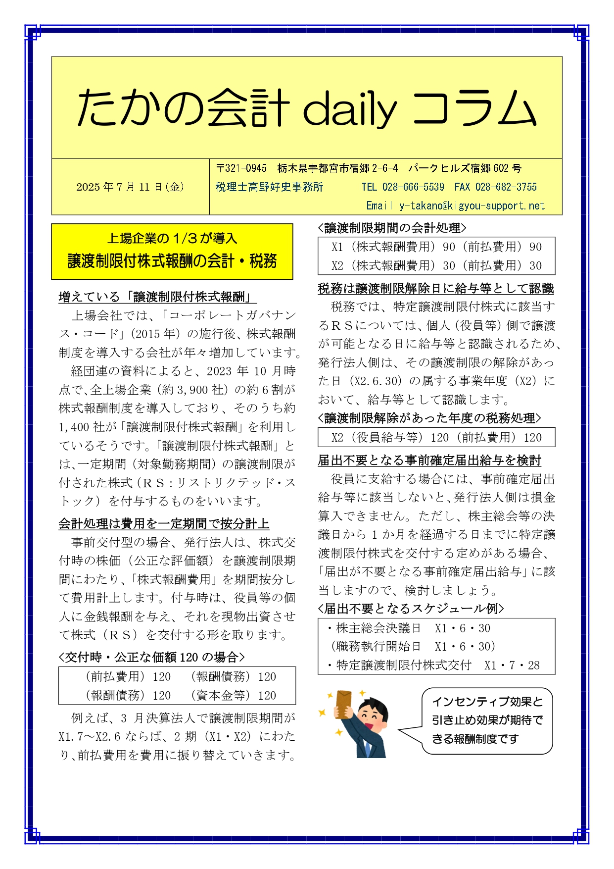 Previous Post: 譲渡制限付株式報酬の会計・税務