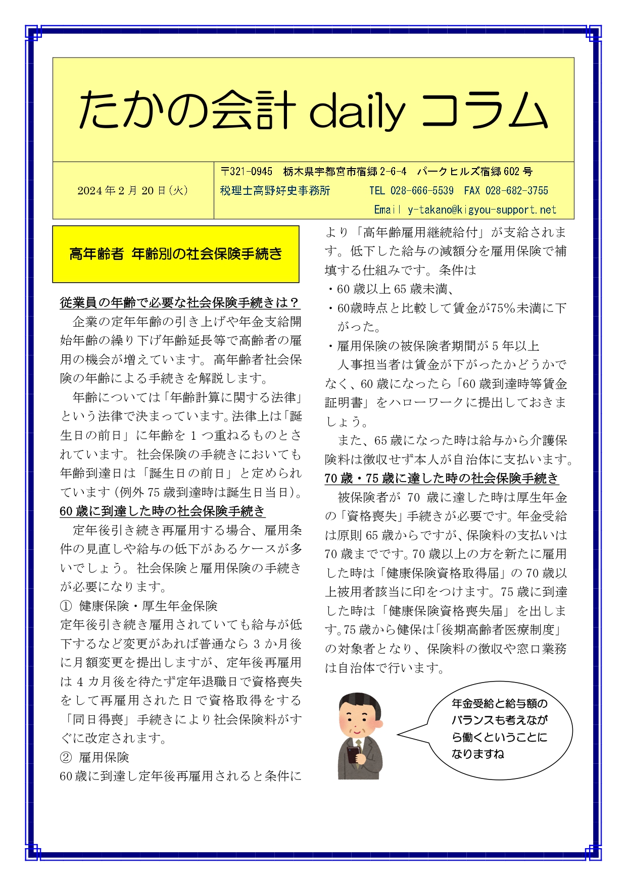 Previous Post: 高年齢者 年齢別の社会保険手続き