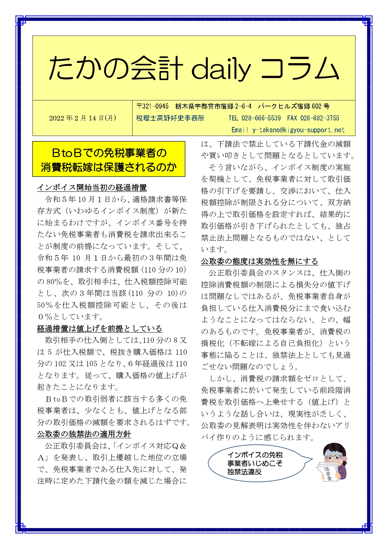 Previous Post: BtoBでの免税事業者の消費税転嫁は保護されるのか