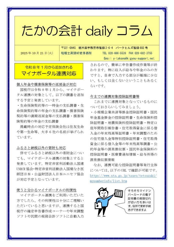 国税庁は令和8年1月から、マイナポータル連携の対象として、以下の調書を追加する予定と発表しています。