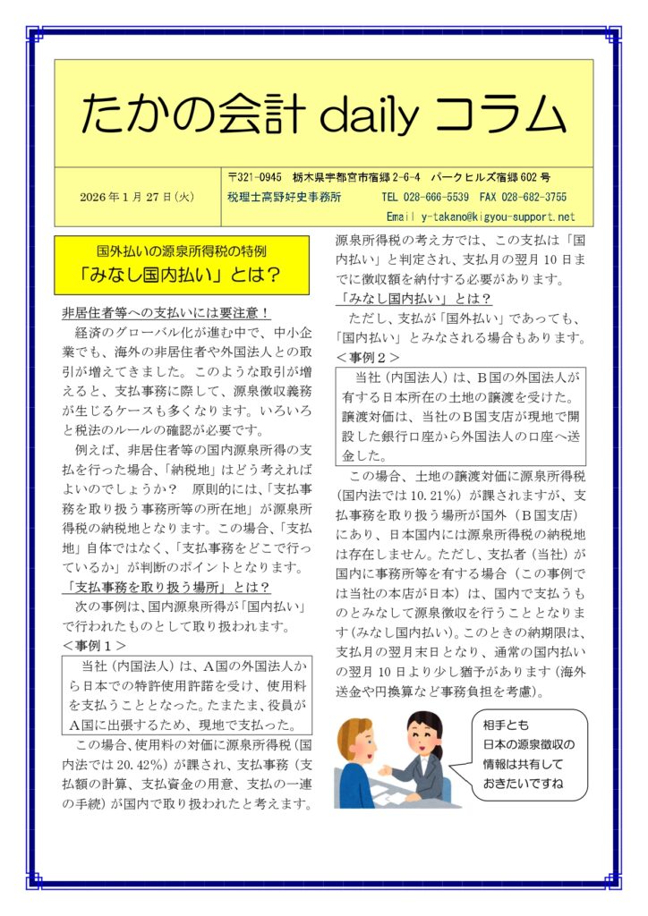 ただし、支払が「国外払い」であっても、「国内払い」とみなされる場合もあります。