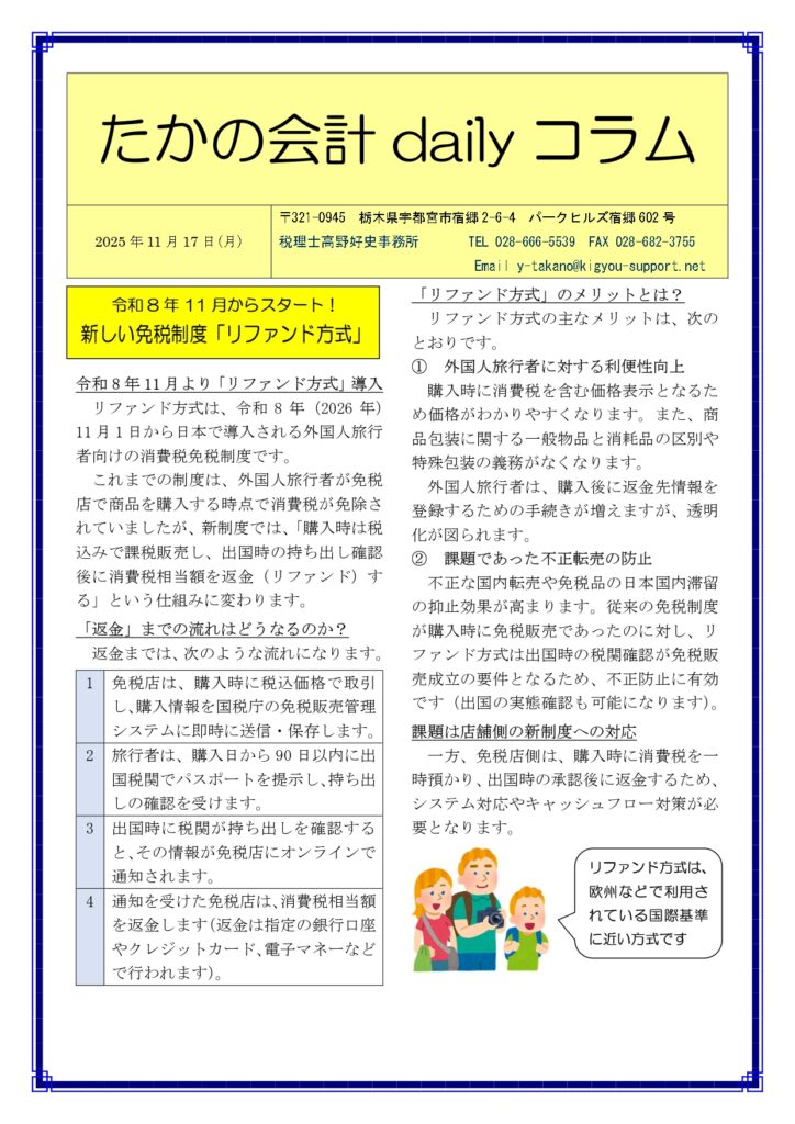 リファンド方式は、令和8年(2026年)11月1日から日本で導入される外国人旅行者向けの消費税免税制度です。