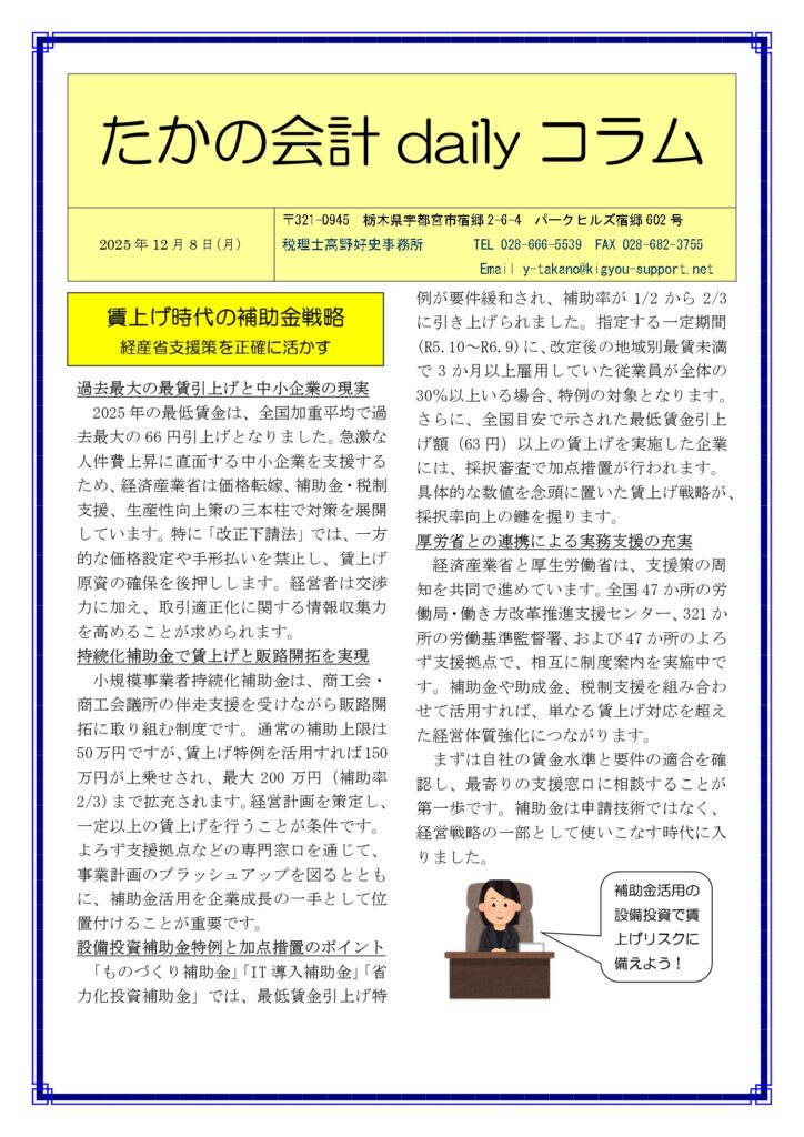 | 補助金活用の設備投資で賃上げリスクに備えよう! |