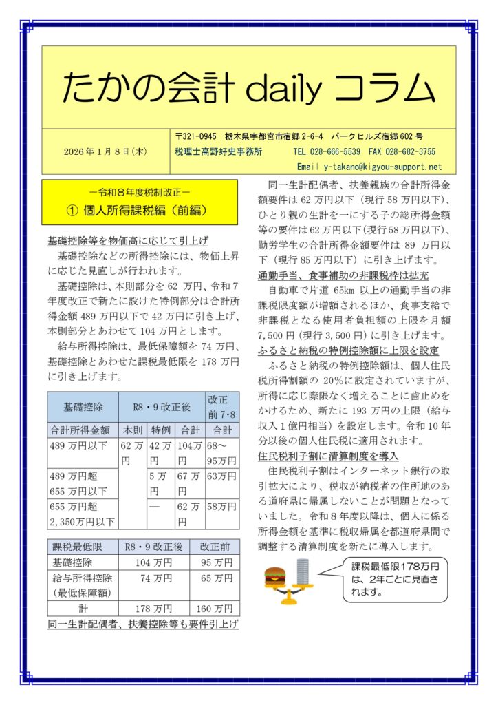 基礎控除等を物価高に応じて引上げ