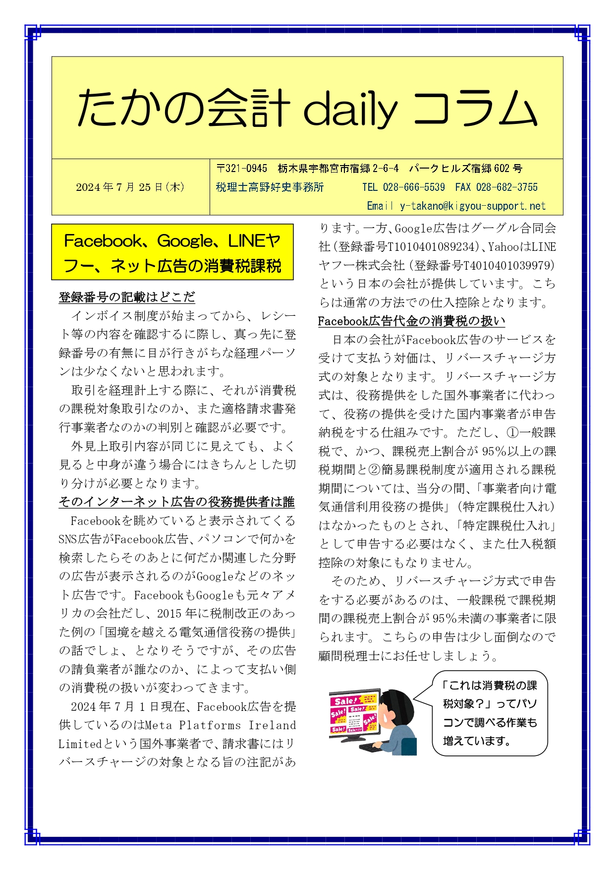 Previous Post: Facebook、Google、LINEヤフー、ネット広告の消費税課税